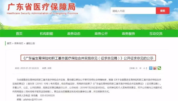 ![]() 就在國家政策發(fā)布不久,各地區(qū)紛紛響應(yīng),出臺相應(yīng)措施。 7月29日,廣東省醫(yī)療保障局發(fā)布《廣東省生育保險和職工醫(yī)療保險合并實(shí)施意見(征求意見稿)公開征求意見的公示》,公示指出:2019年年底廣東省將實(shí)現(xiàn),生育保險和基本醫(yī)療保險合并實(shí)施。