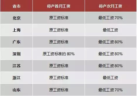 困難企業(yè)的勞動關(guān)系和工資怎么處理? 對于受疫情影響生產(chǎn)經(jīng)營的困難企業(yè)的勞動關(guān)系、工資支付等規(guī)定,那又是怎么樣的呢? 根據(jù)通知:企業(yè)因受疫情影響導(dǎo)致生產(chǎn)經(jīng)營困難的,可以通過與職工協(xié)商一致采取調(diào)整薪酬、輪崗輪休、縮短工時等方式穩(wěn)定工作崗位,盡量不裁員或者少裁員。符合條件的企業(yè),可按規(guī)定享受穩(wěn)崗補貼。 如果停產(chǎn)的第一個月按照原工資支付,進入待崗期,企業(yè)發(fā)放生活費,標(biāo)準(zhǔn)按照各省市規(guī)定執(zhí)行。符合規(guī)定條件的企業(yè),可申領(lǐng)穩(wěn)崗補貼。 北京規(guī)定:根據(jù)《北京市工資支付規(guī)定》第27條,用人單位沒有安排勞動者工作的,應(yīng)當(dāng)按照不低于本市最低工資標(biāo)準(zhǔn)的70%支付勞動者基本生活費。 附圖:部分省市停工停產(chǎn)工資一覽表