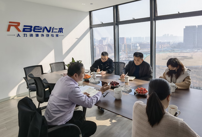 會議上,陶學才一行首先聽取了公司在過去一年的工作情況,并詳細了解春節期間派遣員工留杭過年工作的落實情況。 2020年雖然有疫情的影響,但是杭州仁本迎難而上,響應客戶市場和客戶需求,組織線上招聘會,加大線下市場招聘力度,多渠道多舉措加強招聘力度,滿足企業用工需求。2020年杭州仁本合作單位260余家,服務人數15000余人,通過多渠道招聘入職長期工6600余人次,臨時工近4000人次。并專業有序的為客戶單位辦理社保減免等相關優惠政策。