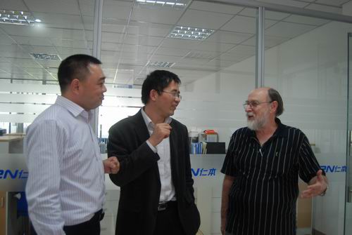 4月28日,澳大利亞堪培拉大學和西安交通大學利物浦大學道格拉斯·戴維斯教授和中國計量學院人力資源專業王洪濤教授來我司參觀交流。在副總經理李雙全和綜合服務部經理曹曉萍的陪同下,兩位教授參觀了公司并針對人力資源管理進行了深入的交流和探討。(圖為兩位教授與我司領導)