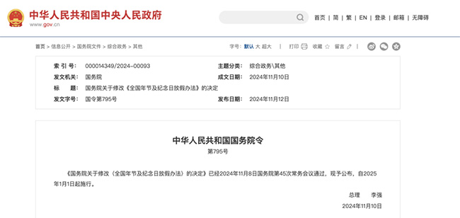 重磅消息來啦!國務院決定對《全國年節(jié)及紀念日放假辦法》作出修改,2025年起,法定節(jié)假日增加2天!