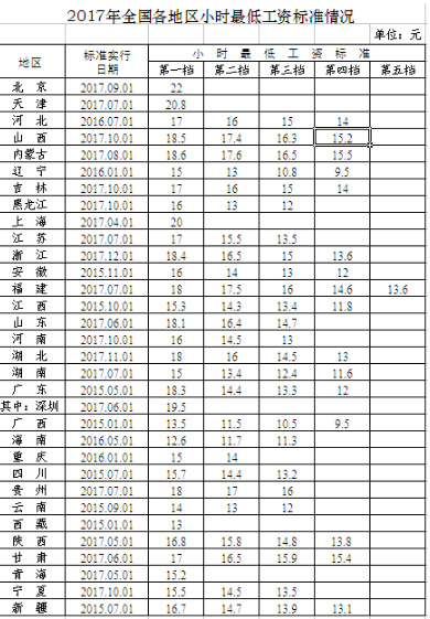 | 2017年全國各地最低工資出爐 你的工資高出多少? |