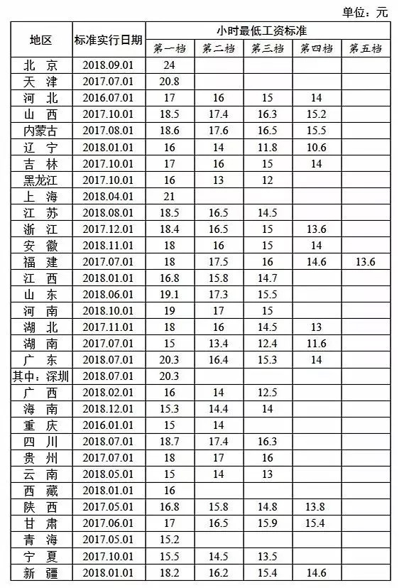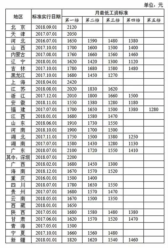 1月10日,人社部網站公布全國各地區月最低工資標準情況(截至2018年12月)和全國各地區小時最低工資標準情況(截至2018年12月)??靵砜纯茨慵亦l的最低工資標準是多少!
