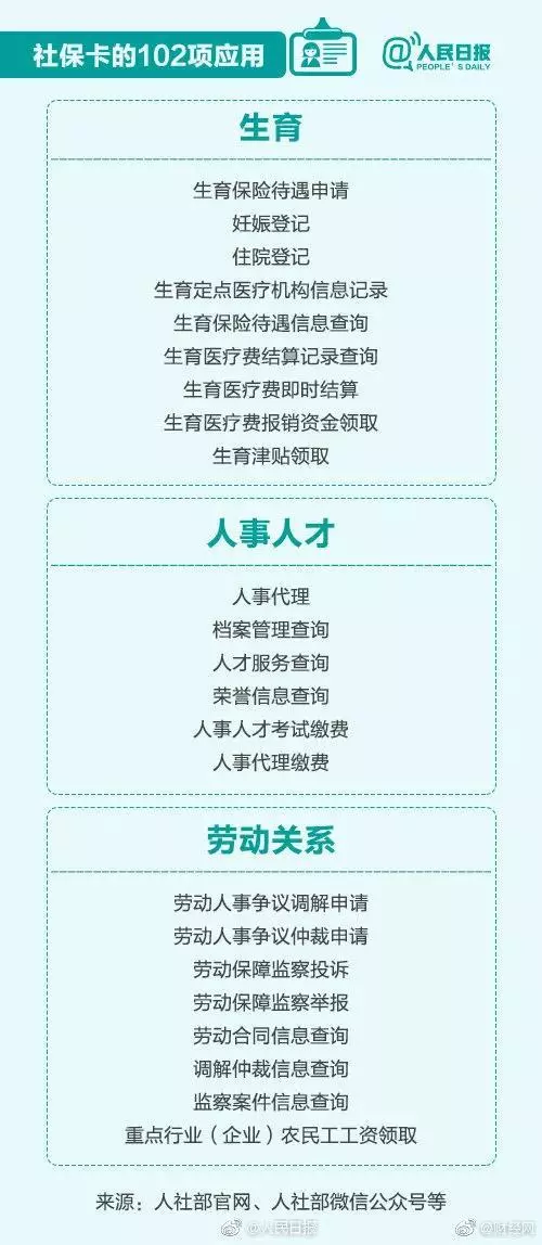 該負責人表示,今年要在所有地市實現(xiàn)簽發(fā)應用全國統(tǒng)一標準的電子社保卡,不低于10%的持卡人(即至少1億人)領取電子社保卡,所有地市均開通移動支付服務。 這意味著,持有電子社保卡之人,在看病后不用排隊即可直接線上支付或者在購藥時掃碼支付。 通知中明確,計劃用2-3年時間逐步實現(xiàn)電子社保卡的廣泛應用,形成社保卡線上線下相結合的綜合應用模式。 其中,2019年,各地以身份認證、人社查詢類業(yè)務為電子社保卡基礎應用場景,逐步拓展至就業(yè)服務、參保繳費、就醫(yī)購藥結算等高頻高粘性應用場景,探索集成其他民生服務應用。今年要在所有地市實現(xiàn)簽發(fā)應用全國統(tǒng)一標準的電子社保卡,不低于10%的持卡人(即至少1億人)領取電子社保卡,所有地市均開通移動支付服務。 人社部信息中心相關負責人指出,群眾申領了電子社保卡,除了能夠在互聯(lián)網上查詢社保參保信息、就業(yè)人才服務信息、個人就業(yè)信息、職業(yè)培訓信息、職業(yè)資格信息、職業(yè)技能等級信息、創(chuàng)業(yè)擔保貸款扶持信息等等,還能申辦線上業(yè)務,包括就業(yè)創(chuàng)業(yè)服務、社保服務、勞動用工服務、人才服務、調解仲裁服務等多類業(yè)務。 更為方便的是,電子社保卡同時具有移動支付功能,可用于線上參保繳費、考試繳費、培訓繳費、醫(yī)療費結算等等。 許多城市目前已通過電子社保卡開通了就醫(yī)購藥服務功能,在就醫(yī)時出示手機端電子社保卡,看病后不用排隊就可直接線上結算,或者在購藥時完成掃碼支付。 2020年,不低于25%的持卡人領取電子社保卡,普遍應用于線上身份認證、就業(yè)人才服務、社保信息查詢、人社業(yè)務繳費、就醫(yī)購藥結算等業(yè)務場景,完成地方模式向全國社保卡服務平臺統(tǒng)一支付結算模式的切換。 2021年,形成實體社保卡與電子社保卡廣泛協(xié)同并用的線上線下“一卡通”服務管理模式,為其他政務服務、金融服務、智慧城市服務領域深入應用電子社保卡提供全面支撐。 該負責人表示,電子社保卡具備的身份認證、生物特征識別、移動支付等能力對相關政府部門和機構開放,可用于支持相關民生服務: 一是向政務服務領域開放,支持各級政務大廳、政務門戶網站、政務APP等使用電子社保卡,實現(xiàn)身份認證和快速登錄。支持醫(yī)保移動支付(門診、購藥、住院)等就醫(yī)一卡通應用。 二是向智慧城市服務拓展,發(fā)揮電子社保卡身份憑證功能,與交通出行、公用事業(yè)、小額支付等場景結合,推進在入園、入館、出行等方面的應用。 三是向金融服務開放,提供電子社保卡繳費支付服務,實現(xiàn)相關民生繳費和待遇發(fā)放,探索社保卡銀行賬戶線上應用、銀行賬戶身份核驗、信用服務等方面合作。 下面通過9張圖,讓大家更加清晰地了解電子社保卡的所有信息: