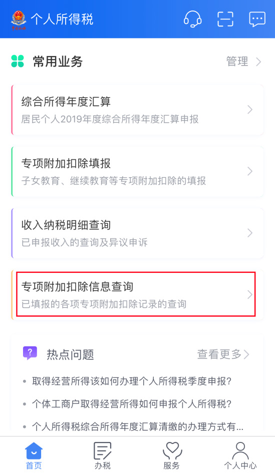 6、查看確認(rèn)您的專項(xiàng)附加扣除是否填報(bào)正確在首頁依次點(diǎn)擊【常用業(yè)務(wù)】-【專項(xiàng)附加扣除信息查詢】,選擇“2020年度”,可查看您已填報(bào)的專項(xiàng)附加扣除信息。 如果前期忘記填報(bào)或者需要修改,可以在首頁依次點(diǎn)擊【我要辦稅】-【專項(xiàng)附加扣除填報(bào)】或【專項(xiàng)附加扣除修改和作廢】模塊-選擇“2020年度”,填報(bào)或修改相應(yīng)的專項(xiàng)附加扣除信息。